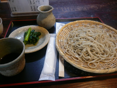 午市主要賣ざるそば,產地是信州,由整作麵粉至煮麵是師傅一人負責,叫一客ざるそば~信州産細打ち,賣的只是數百日圓,相對日本什麼昂貴下,そば就自然變成平價美食,點了餐後,師傅會由製作麵的房間取出麵條,用大鍋上煮麵,最後再用冷水沖洗,
